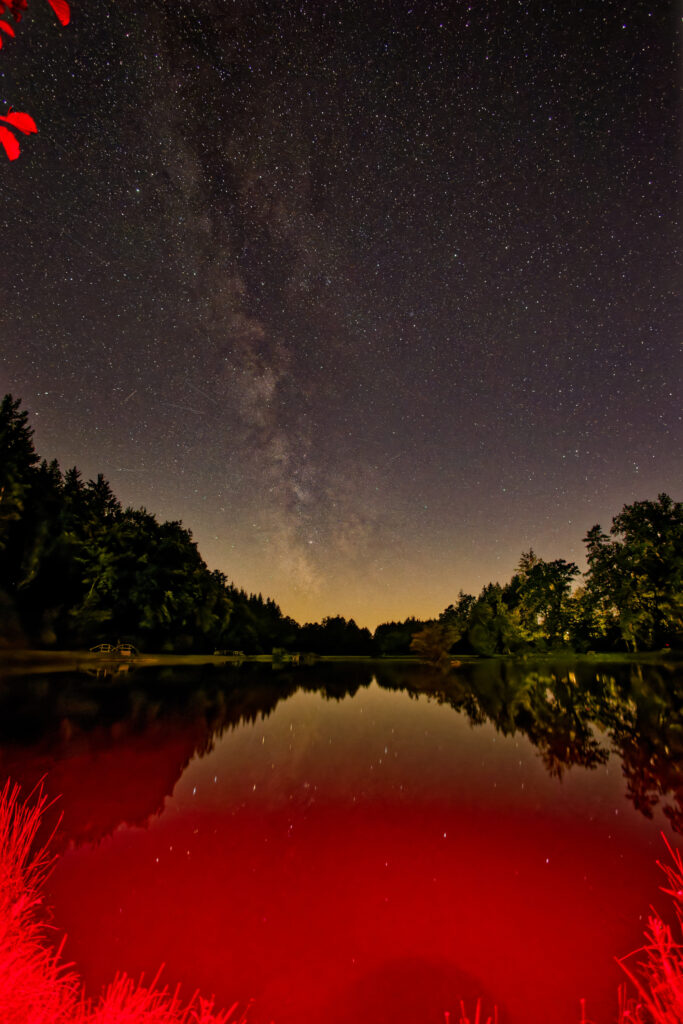 Auch auf dem Peterberg entstanden im Frühjahr weitere Aufnahmen der Milchstraße. Und zum Ende der Saison im Juni gelang uns noch eine besonders schöne Serie über dem Schillinger Weiher – ein würdiger Abschluss der Milchstraßenzeit.