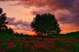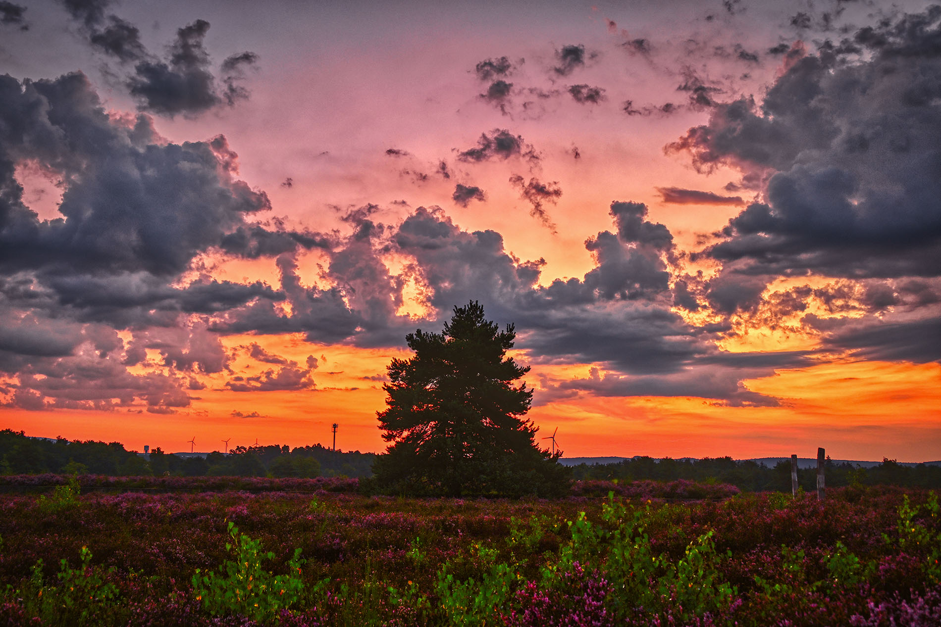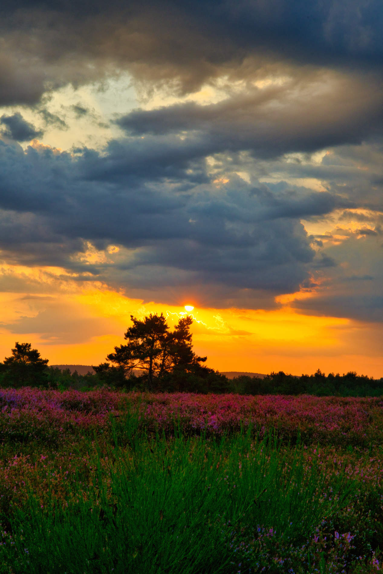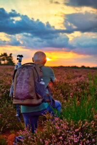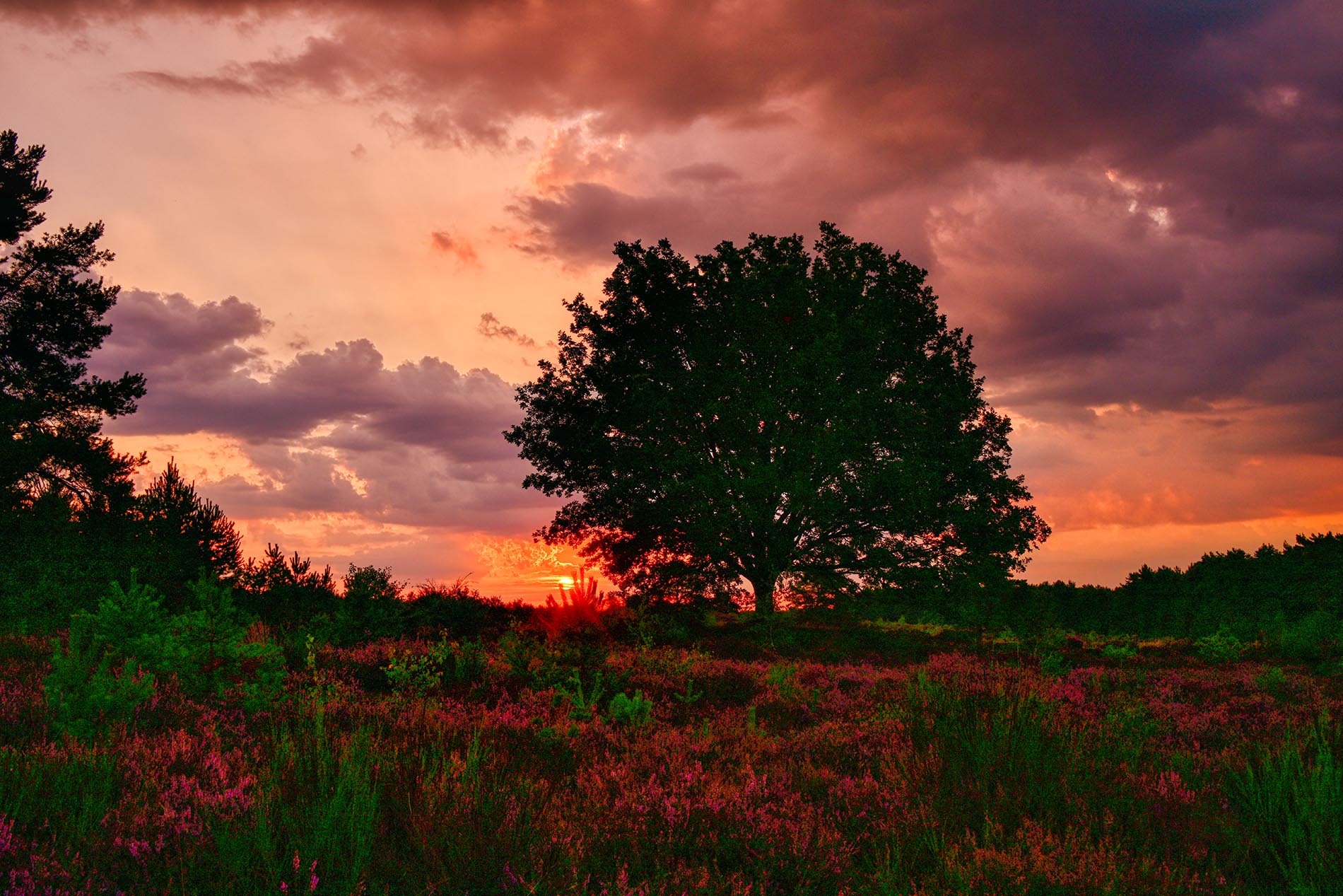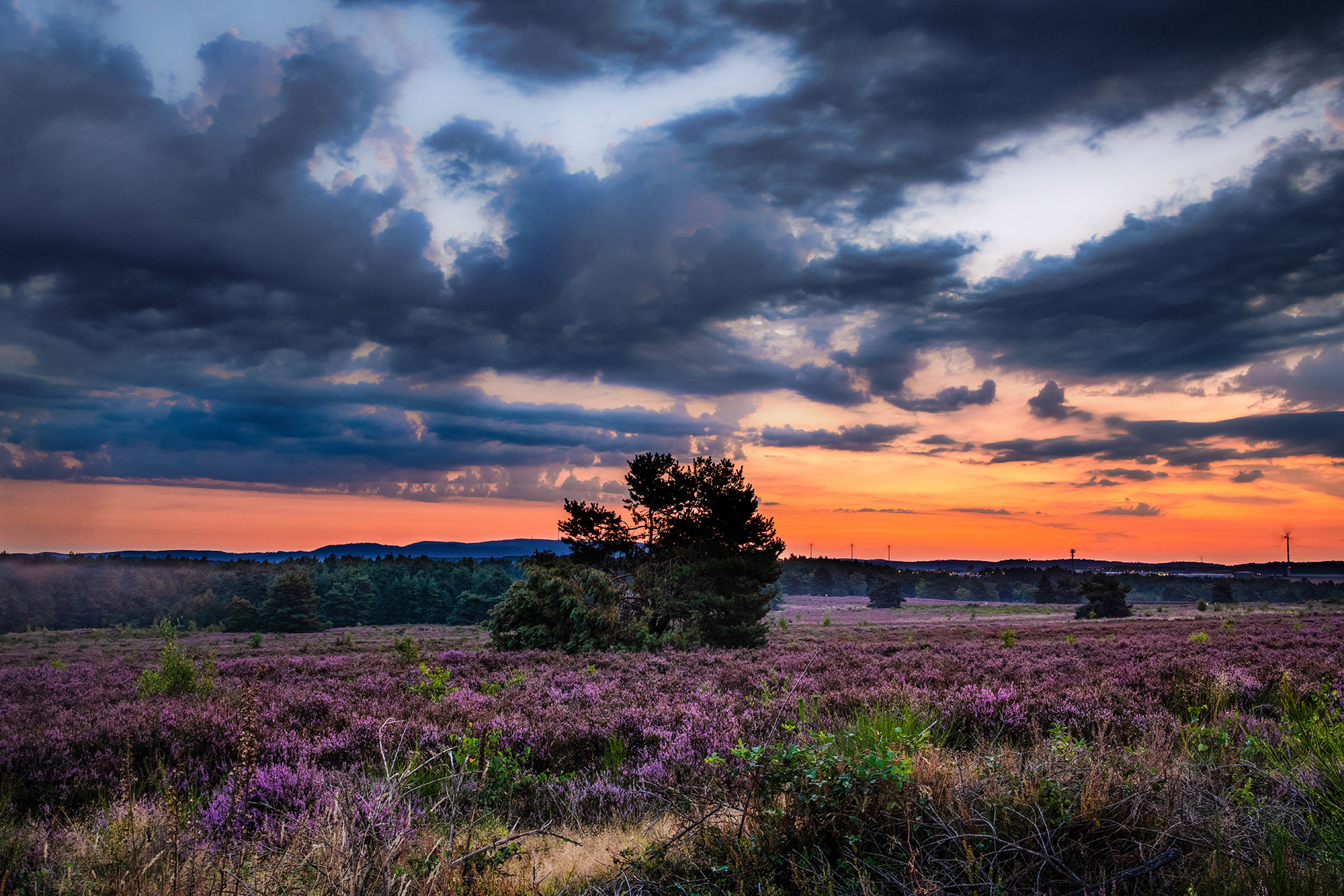 Die Sonne streckte ihre ersten goldenen Strahlen über den Horizont, tauchte die blühende Heide in ein sanftes, beinahe surreales Licht. Kameraauslöser klickten, Stative wurden neu ausgerichtet, und jeder war ganz in seine Motivsuche vertieft. Es entstanden faszinierende Aufnahmen – Panoramen mit leuchtendem Himmel und violettem Heidekraut.