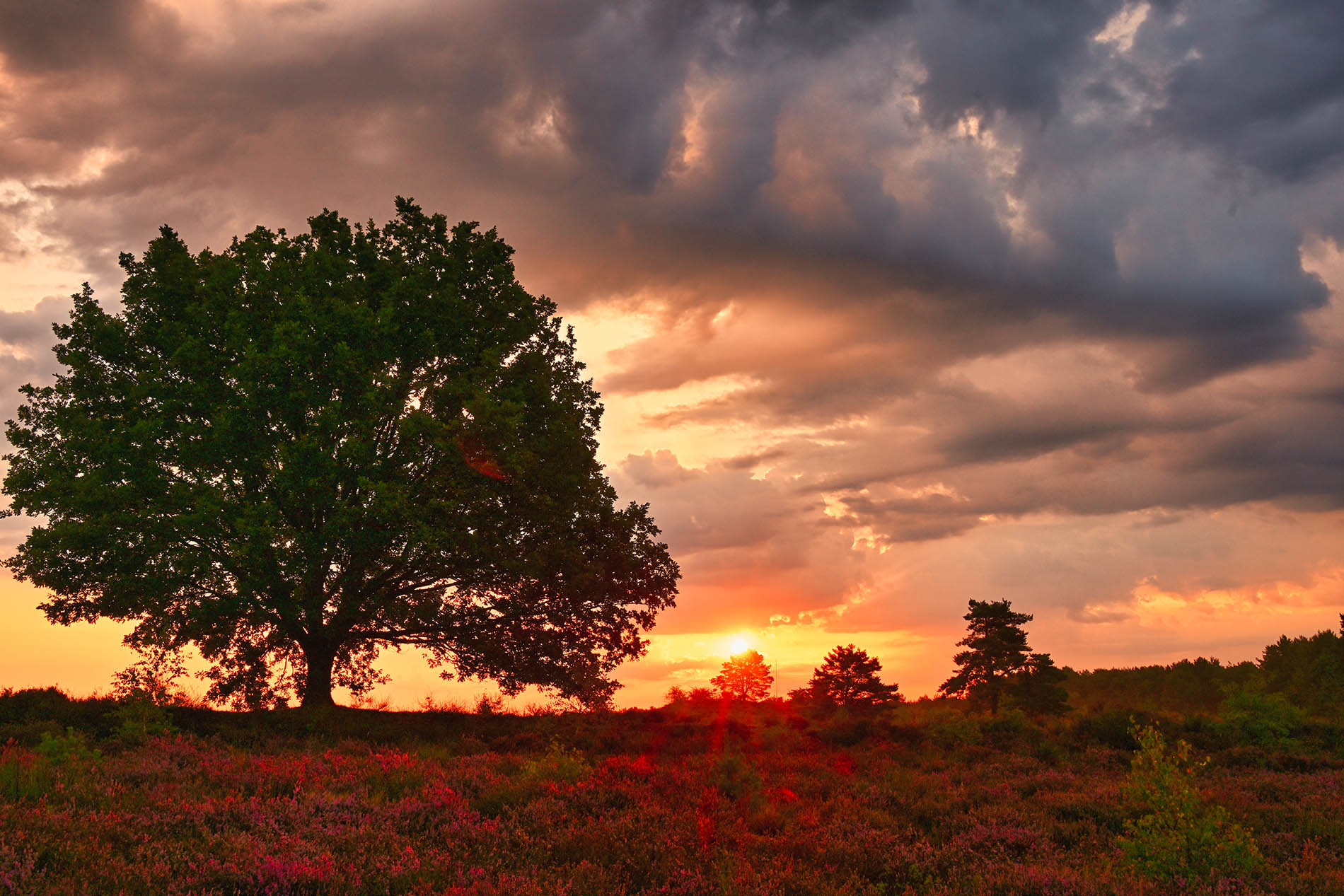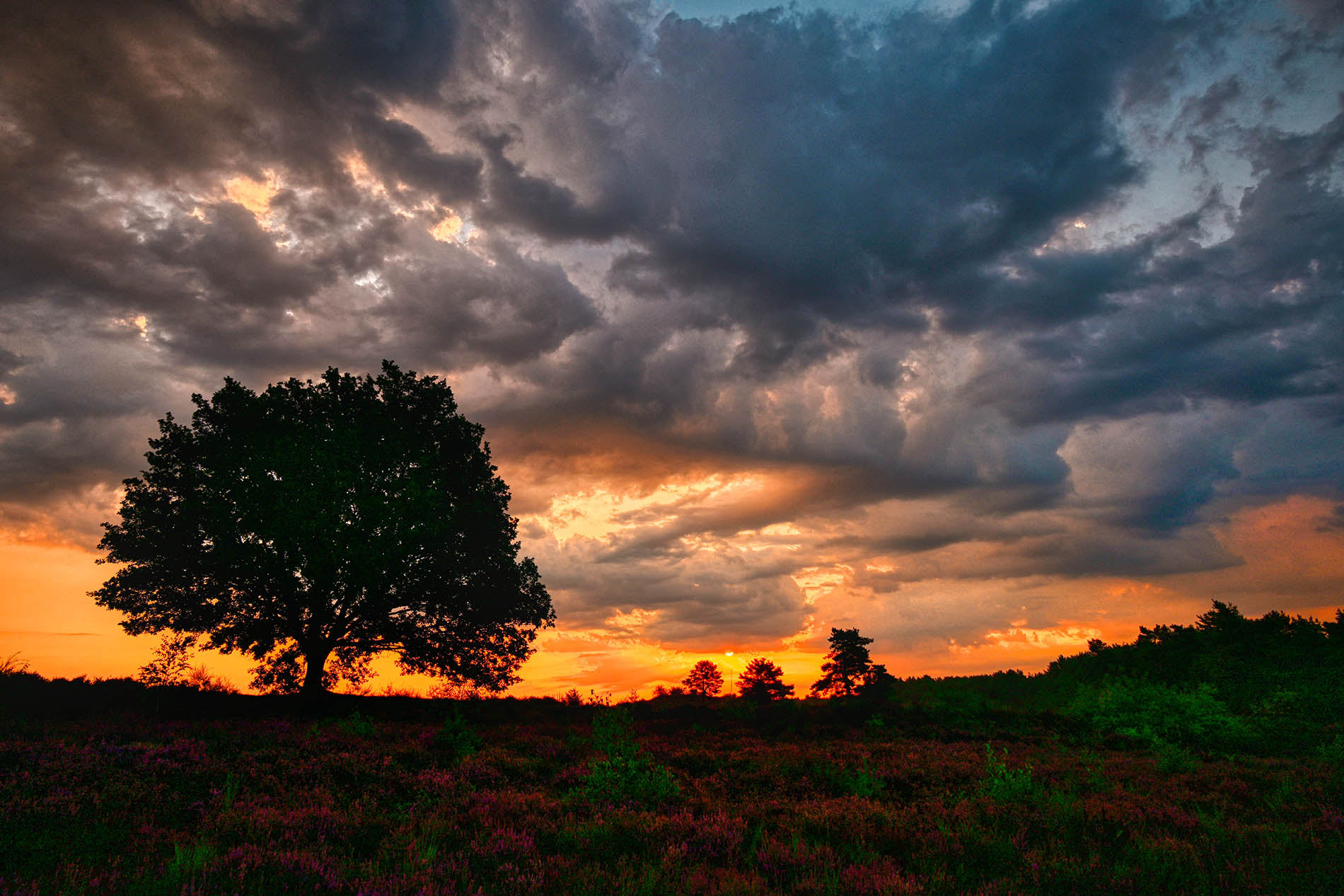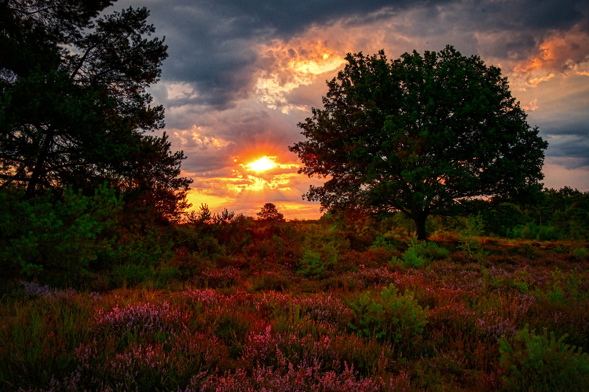 Die Heide ist vor allem für ihre ausgedehnten Flächen von Besenheide (Calluna vulgaris) bekannt, die im Spätsommer in leuchtendem Lila blüht und der gesamten Landschaft einen beinahe mystischen Charakter verleiht. Doch die Flora ist noch vielfältiger: Auch Wacholderbüsche, Birken, Kiefern und seltene Orchideenarten finden hier ihren Lebensraum. Die offene Heidelandschaft wird von sandigen Böden, kleinen Hügeln und weiten Blicken geprägt, die zu jeder Tageszeit ein anderes Gesicht zeigen.